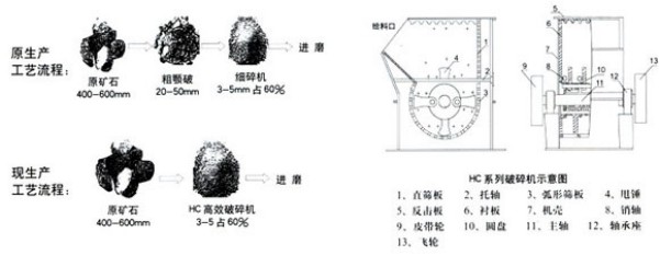 HC系列節(jié)能破碎機是我公司工程技術人員經過反復實踐與探索研制出的一種新型產品,它廣泛適用于石料廠、人工砂和水泥生料原料破碎,尤其適宜對石灰石、白云石、頁巖、石膏礦、熒石、煤矸石等中硬脆性物料,進料粒度大、出料粒度小且均勻、并且可根據不同需要選擇和預定篩板,是礦山、水泥、建材企業(yè)比較理想的破碎設備。改寫了水泥生料設備工藝并減少1/3的設備投資和節(jié)省1/2的電耗,省去了大量的維修費用。