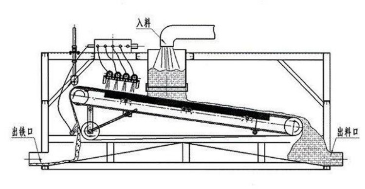 高梯度平板磁選機,采用帶式分選結(jié)構(gòu),在整個工作區(qū)域從進料到出料,物料在皮帶的帶動下,可對物料進行多次磁攪拌,同時在水流的沖洗作用下,把不含磁的尾礦除去,帶有磁性的礦物被皮帶輸送到板選機的脫磁區(qū),從而將帶有磁性的礦物通過脫磁裝置脫掉,來完成選礦的過程,整機功率小、處理大,磁場強度高,并達到很好的品質(zhì),能夠獲得更大的效益。