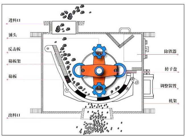 錘式破碎機的主要工作部件為帶有錘子(又稱錘頭)的轉(zhuǎn)子。轉(zhuǎn)子由主軸、圓盤、銷軸和錘子組成。