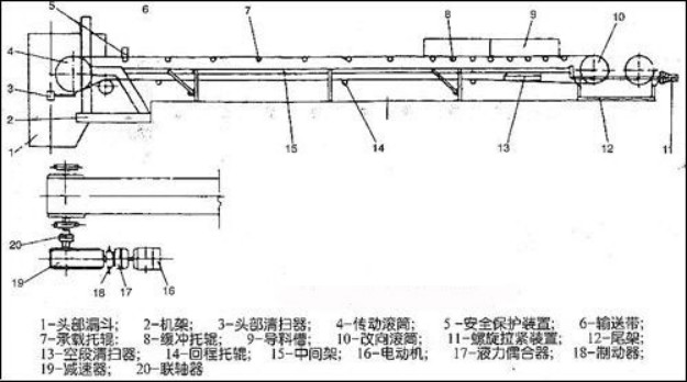 4、TD75型帶式輸送機適用于水平或傾斜輸送。驅(qū)動部分采用電機--減速機驅(qū)動或電動滾筒驅(qū)動兩種型式。制動裝置選用滾柱逆止器。帶式逆止器、制動器等。拉緊形式有螺旋拉緊、垂直拉緊、車式拉緊三種。5、定貨時需注明:帶速、帶寬、輸送距離、輸送量、傾斜角度、物料特性、工作環(huán)境、堆積角度等基本技術(shù)參數(shù)。