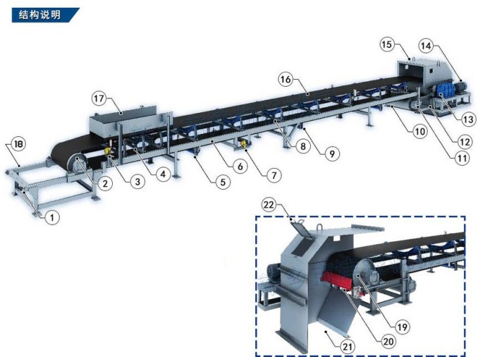 將物料經(jīng)由輸送皮帶送至后續(xù)工序或設(shè)備。